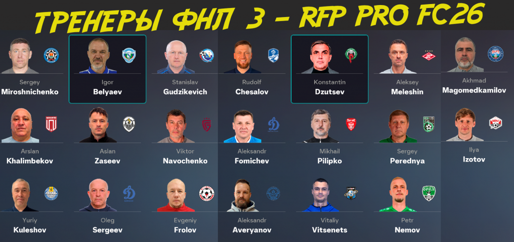 Все назначения, увольнения и изменения учтены, чтобы карьерный режим отражал текущую структуру российского футбола максимально точно.