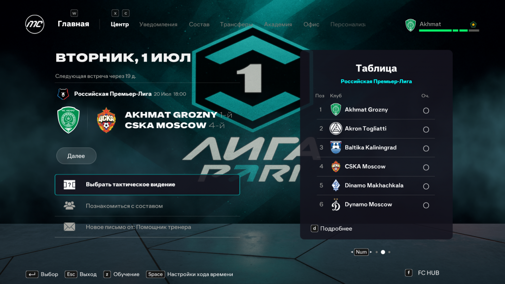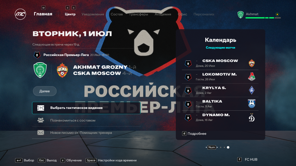 • ожидания руководства и долгосрочное развитие клуба в режиме карьеры.