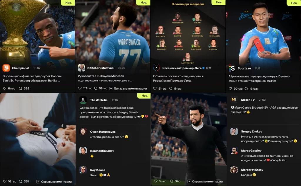 Созданы уникальные фанатские кричалки и песнопения, полностью основанные на реальной трибунной культуре. Многие команды РПЛ получили свою атмосферу: узнаваемые ритмы, заряды, поддерживающие мелодии и фирменные ультрас-песни, которые звучат на стадионах России. Эти элементы делают матчи живыми, эмоциональными и по-настоящему домашними — будто вы находитесь в центре трибун своего клуба.