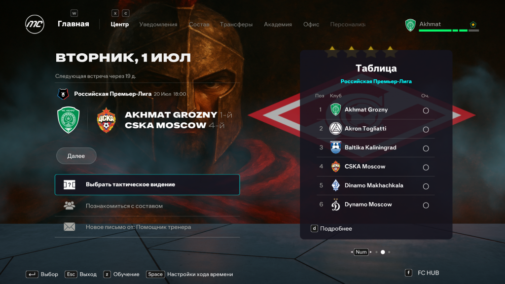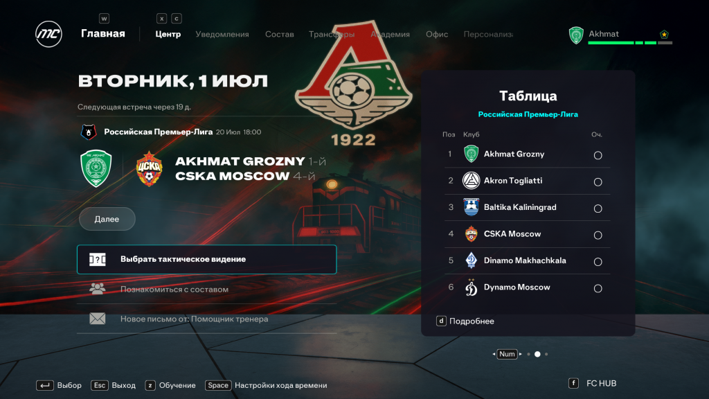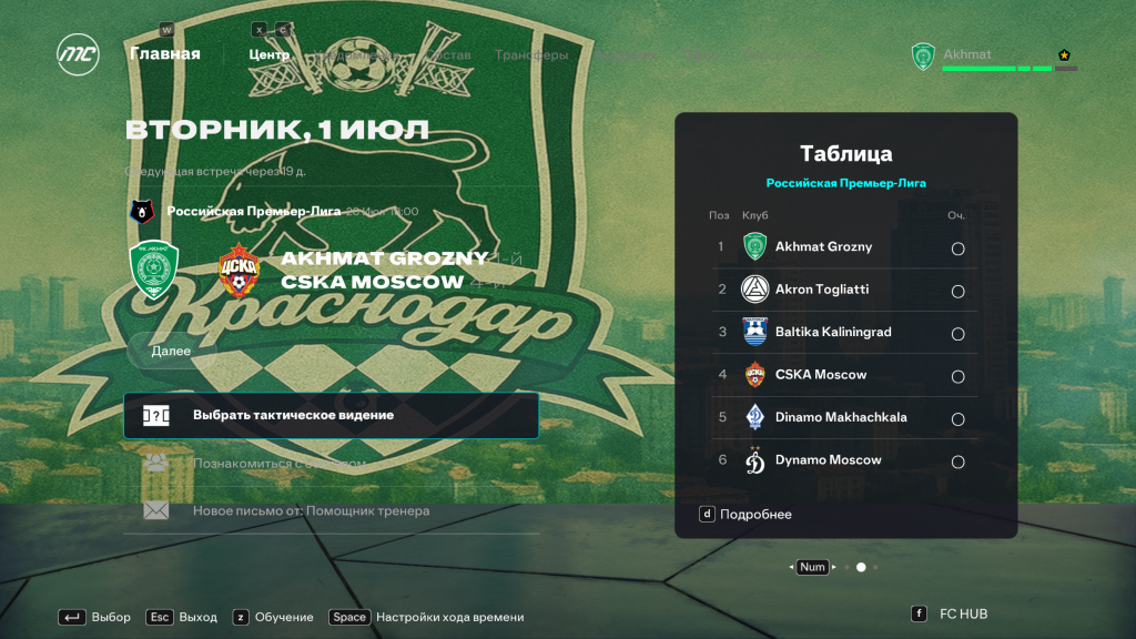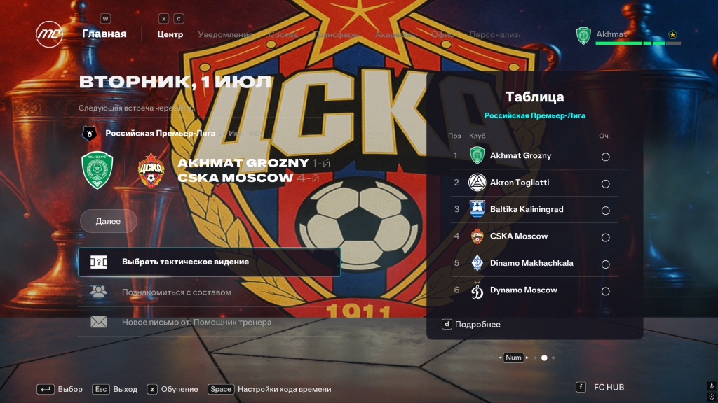 Добавлены тематические фоны в режиме карьеры для: РПЛ, ФНЛ, Зенит, Спартак, Краснодар, Динамо, ЦСКА и Локомотив. Это создаёт антураж родной команды или лиги где вы выступаете. Все фоны эксклюзивные и были созданы ИИ. Вы сможете легко переключать фон или отключить если они вам не нужны.