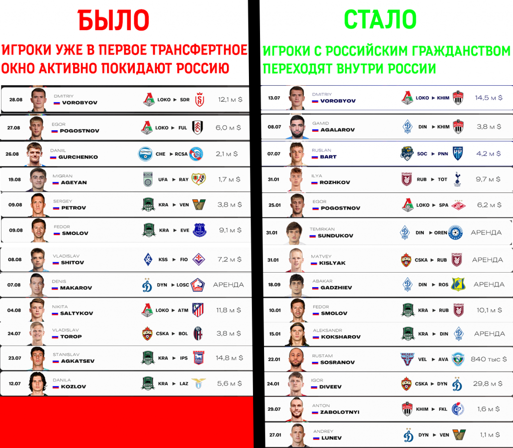 • Игроки с российским гражданством являются ценными для клубов внутри страны.